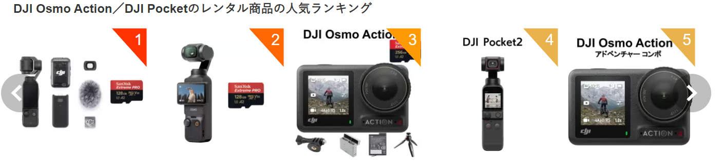DJI Osmo Action、DJI PocketのレンタルランキングBEST5