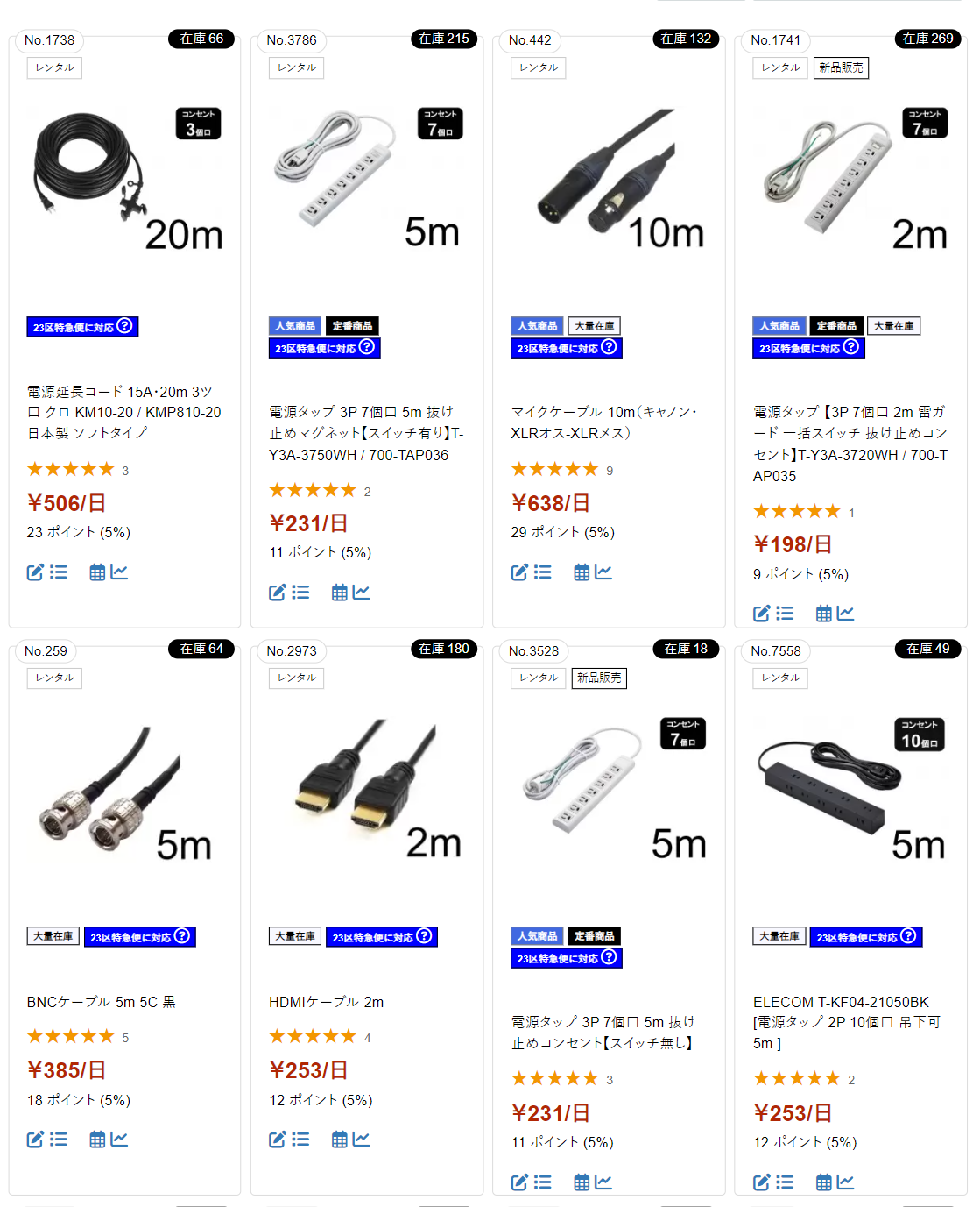 パンダスタジオレンタルでのケーブル・アクセサリーレンタル一覧