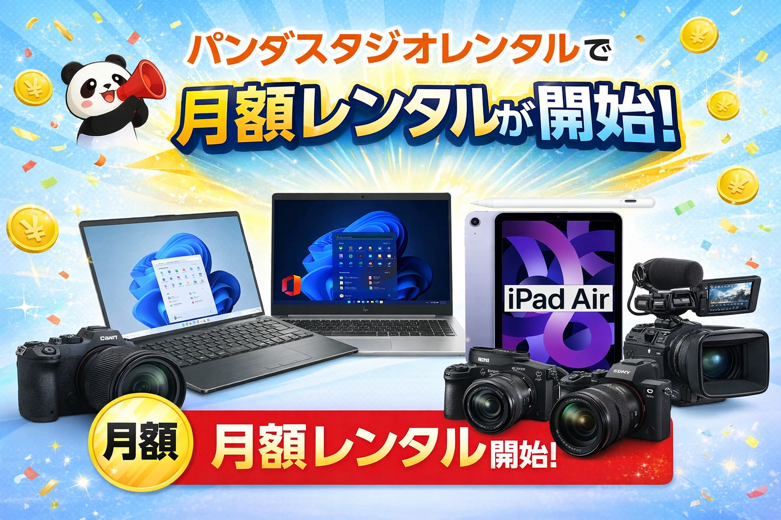 パンダスタジオレンタルで月額レンタルが開始!