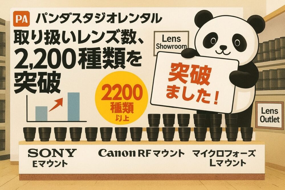 パンダスタジオレンタルでは、ついに取り扱いレンズが2200種類を突破しました。お客様の撮影スタイルや用途に合わせて、より多彩な選択肢をご提供できるようになっています。