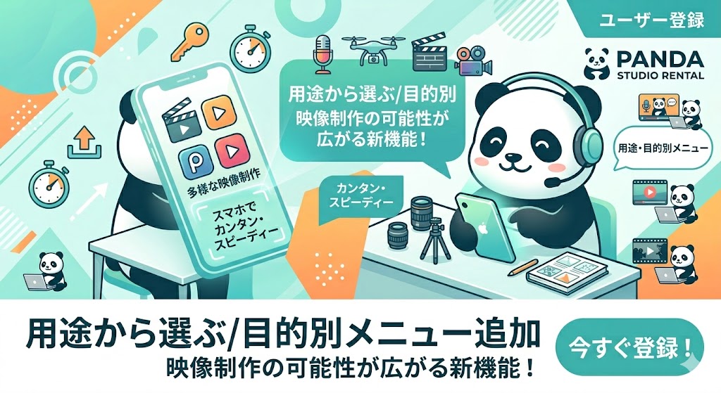 パンダスタジオレンタルはお客様の利便性を更に向上させるため、日々機能がパワーアップしているWEBサイトですが
