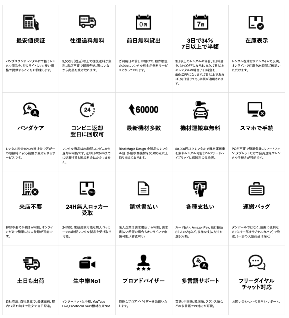 インターネットを利用した多数のレンタル機材屋の中から、どうして「パンダスタジオレンタル」が選ばれ続けているかをまとめました。