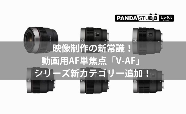 映像制作の現場では、「いかに高品質な映像を効率よく撮影できるか」が作品のクオリティを大きく左右します。そんな中、今注目を集めているのが、動画専用に最適化された単焦点AFレンズ「V-AF」シリーズです。パンダスタジオレンタルでは、このV-AFシリーズをまとめた新カテゴリーを新設し、映像クリエイターの皆さまがより簡単・快適に理想の映像を撮影できる環境をご用意しました。