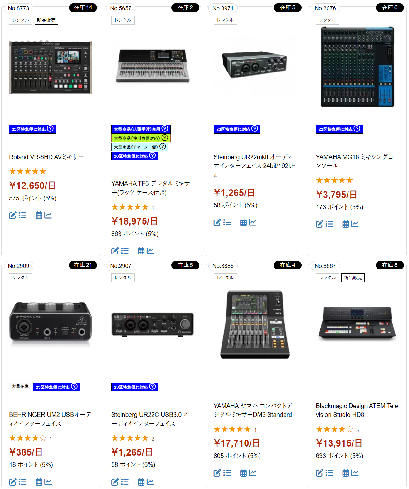 ミキサー・オーディオインターフェイスのレンタル商品の人気ランキング