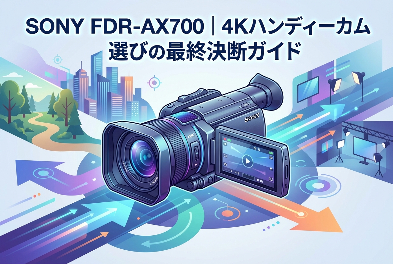 映像制作のプロフェッショナルからハイアマチュアまで、幅広い層から支持を集めるSONY FDR-AX700(4Kハンディーカム)。2018年の発売以来、その卓越した映像品質と使い勝手の良さで多くのユーザーを魅了し続けています。本記事では、FDR-AX700の購入を検討されている方に向けて、スペックから実際の使用感、競合機種との比較まで、最終的な購入判断に必要なすべての情報を網羅的に解説します。