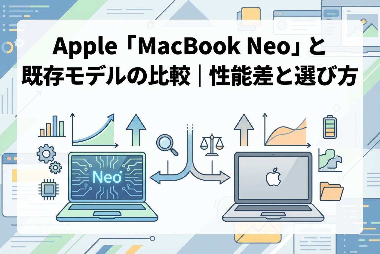 Appleから登場が噂される新型モデル「MacBook Neo」。既存のAirやProと何が異なり、ビジネスシーンでどのような価値を提供するのでしょうか。本記事では、MacBook Neoのスペック、価格、デザインを徹底比較し、最適な選び方を解説します。
