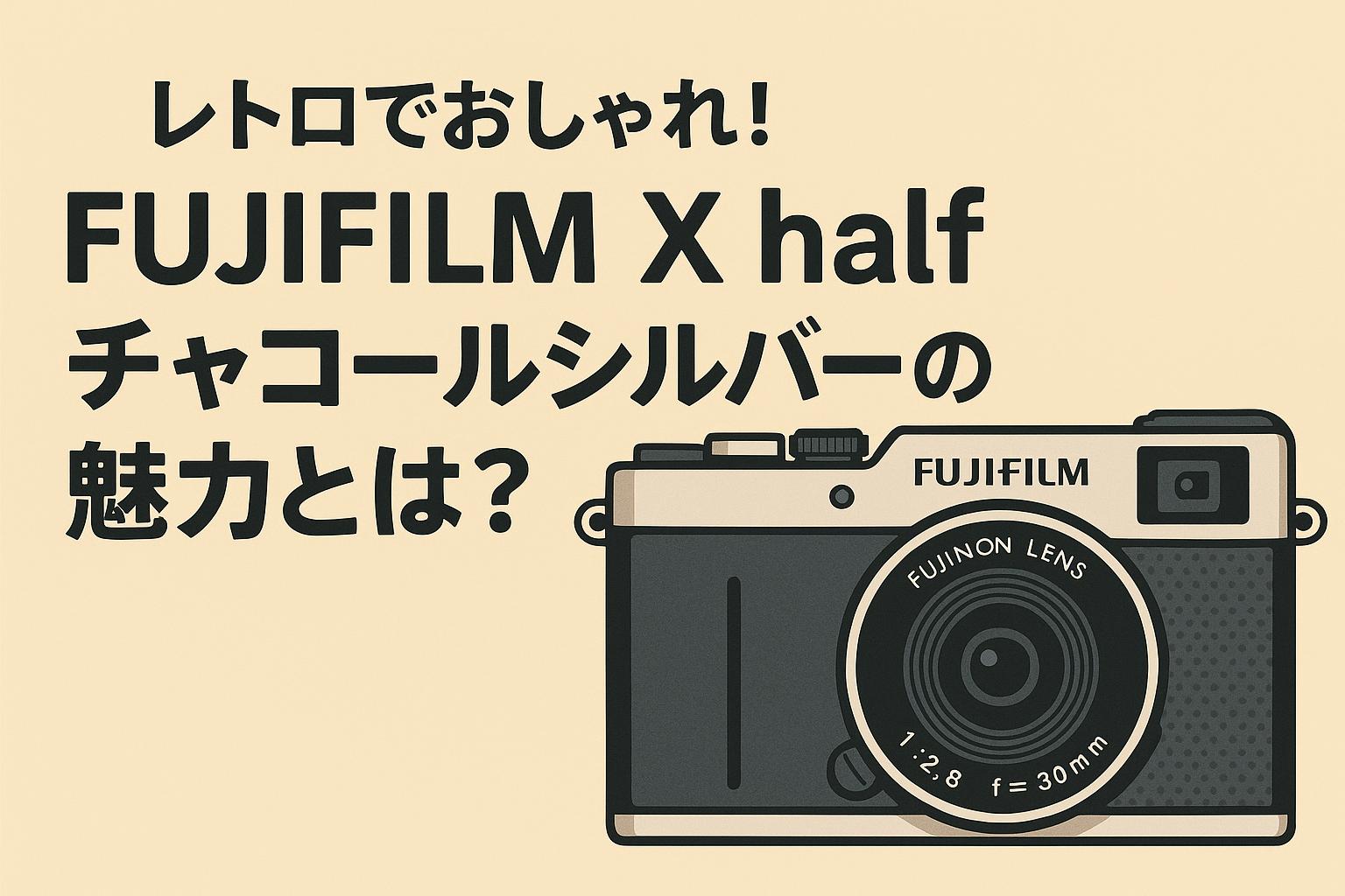 レトロでおしゃれなデザイン、エモい写真が撮れるフィルムシミュレーション、そして毎日持ち歩きたくなる軽さ。スマホでは味わえない「写真を撮る楽しさ」を、ぜひこのカメラで体験してみてください。チャコールシルバーのX halfと一緒に、新しいカメラライフをスタートさせちゃいましょう!