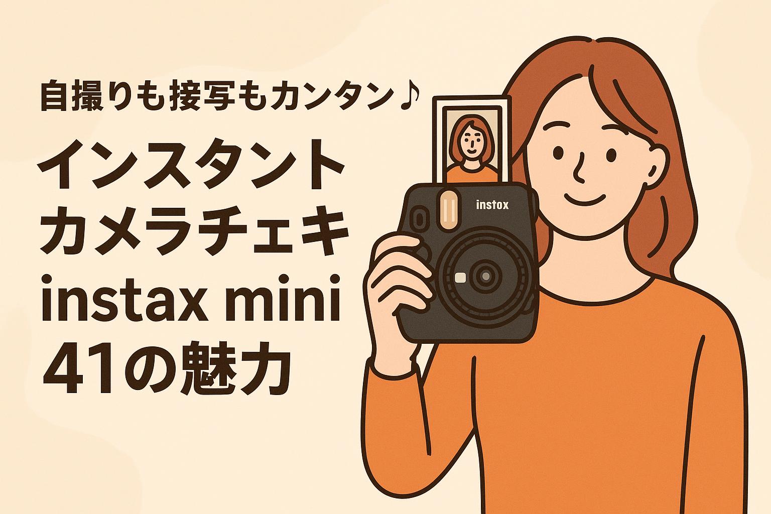 スマホで写真を撮るのが当たり前になった今だからこそ、その場でプリントされるインスタントカメラの魅力が再注目されていますよね!中でも、FUJIFILMの「instax mini 41 インスタントカメラ チェキ INS MINI 41」は、自撮りも接写もカンタンに楽しめる大人気のアイテムです♪