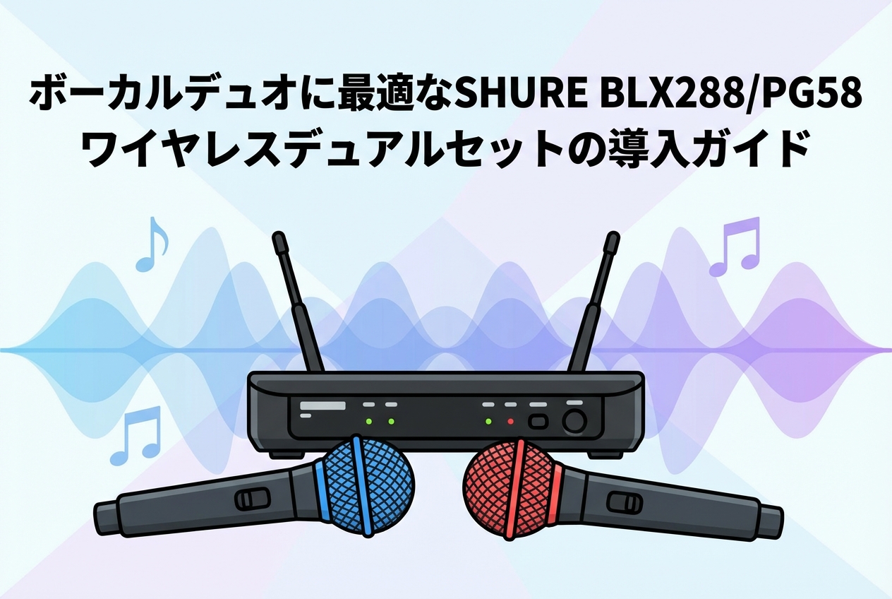 ボーカルデュオや複数人でのイベント進行において、高品質かつ安定したマイク環境の構築は不可欠です。本記事では、プロフェッショナルな現場から小規模なイベントまで幅広く支持されている「SHURE BLX288/PG58 ワイヤレスデュアルセット」について、その魅力と具体的な導入手順を詳しく解説いたします。本製品がいかにしてクリアな音声とスムーズな運用を実現するのか、具体的な活用シーンや保守管理の方法を交えてご紹介します。