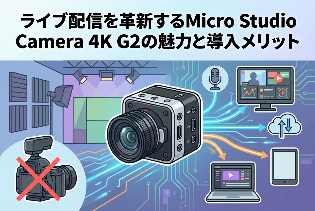 近年、企業のビジネスライブ配信やオンラインイベントにおいて、映像のクオリティがブランドの信頼性を左右する重要な要素となっています。その中で、圧倒的な高画質とコンパクトな筐体を両立し、ライブ配信の現場に革新をもたらしているのがBlackmagic Design社の「Micro Studio Camera 4K G2」です。本記事では、この次世代カメラの基本スペックから、プロフェッショナルな現場での運用メリット、ATEMスイッチャーとの連携効果、そして実際のビジネスシーンでの活用方法までを徹底解説します。高品質な映像制作システムを検討中の企業担当者様は、ぜひ導入の参考にしてください。