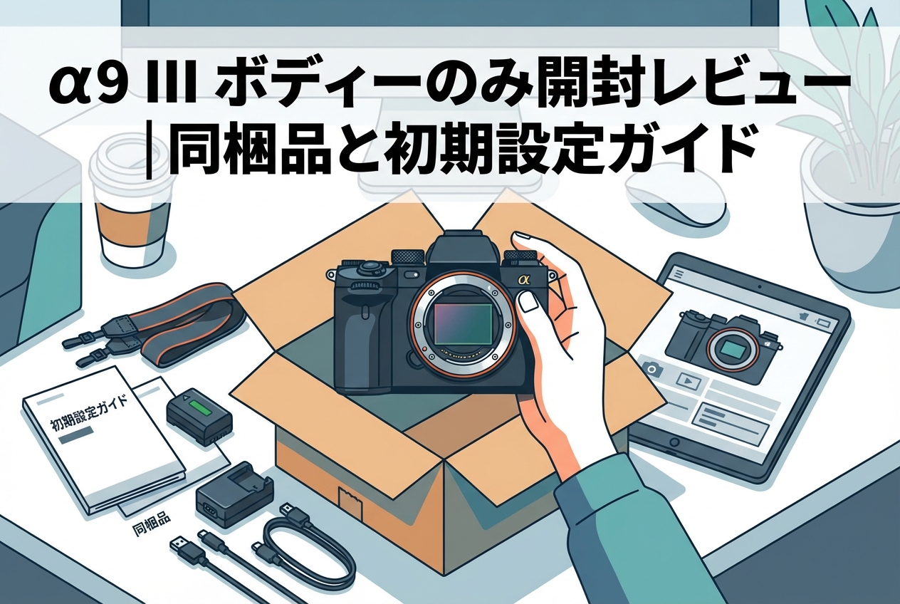 SONY α9 III(ILCE-9M3)は、世界初のグローバルシャッター搭載フルサイズミラーレスカメラとして、プロフェッショナルフォトグラファーやハイアマチュアから大きな注目を集めています。本記事では、「SONY α9 III/ ILCE-9M3 (ボディーのみ) SONY(ソニー)」を実際に購入し、開封から初期設定、おすすめの周辺機器選びまでを徹底的にレビューします。ボディーのみで購入を検討されている方に向けて、同梱品の詳細や最初に行うべき設定、揃えておきたいアクセサリーまで網羅的に解説しますので、購入前の参考としてぜひ最後までご覧ください。