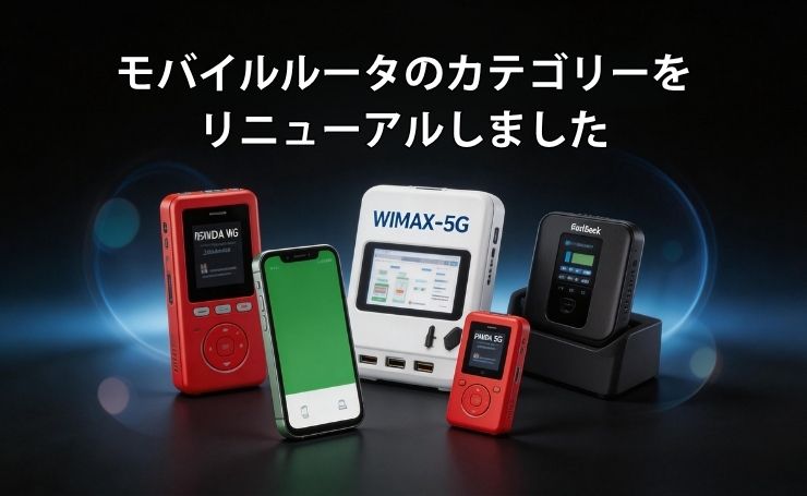 パンダスタジオでは、モバイルルーターを多数レンタルしていますが、順次商品を追加するなかで分かりづらくなっていましたので、カテゴリー分けを整理しました。今回、あらたに、5Gモバイルルーターのカテゴリーのレンタルカテゴリーを新設しましたので、お知らせいたします。
