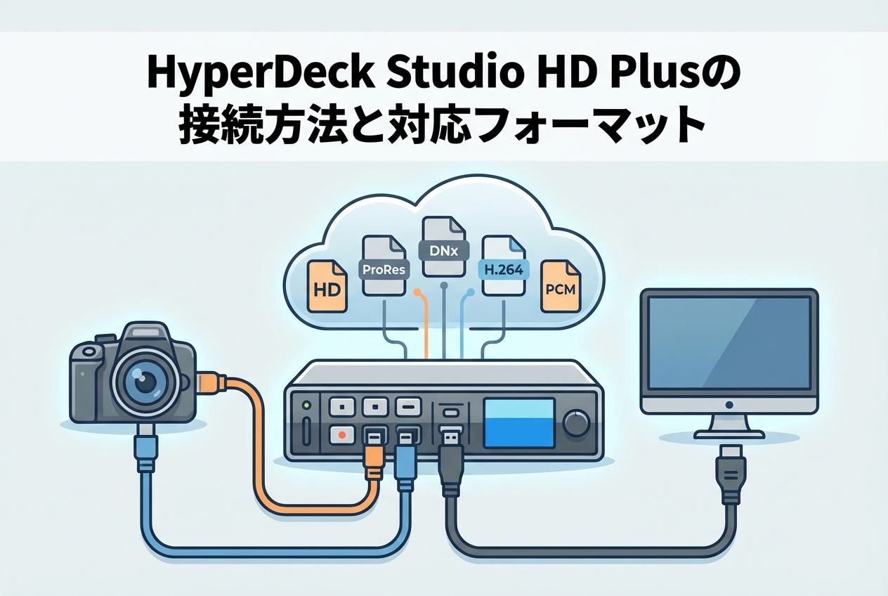 Blackmagic Design HyperDeck Studio HD Plusは、放送業界やライブプロダクションの現場で高い評価を受けているデッキ型レコーダー/プレーヤーです。SDIやHDMI接続に対応し、多彩なコーデックでの収録・再生が可能な本製品は、業務用映像制作において欠かせない存在となっています。本記事では、HyperDeck Studio HD Plusの接続方法と対応フォーマットを中心に、基本仕様から導入時の注意点まで、実務に役立つ情報を網羅的に解説いたします。これから導入を検討されている方はもちろん、すでにお使いの方にとっても有益な内容となっておりますので、ぜひ最後までご覧ください。
