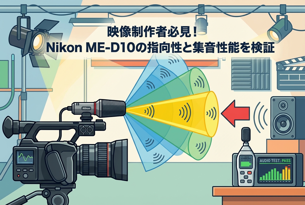 映像制作において、音声品質は映像そのものと同等以上に重要な要素です。どれほど美しい映像を撮影しても、音声にノイズが混入したり、目的の音源を的確に捉えられなければ、作品全体のクオリティは大きく損なわれます。Nikon ショットガンマイクロホン ME-D10は、Nikon純正の高指向性マイクとして、映像制作者から高い関心を集めている製品です。本記事では、ME-D10の基本スペックから実機検証による指向性・集音性能の評価、さらには現場での実践的な活用シーンまで、映像制作者が導入を検討する際に必要な情報を網羅的にお届けいたします。競合製品との比較や最適な運用方法についても詳しく解説しておりますので、ぜひ最後までご覧ください。