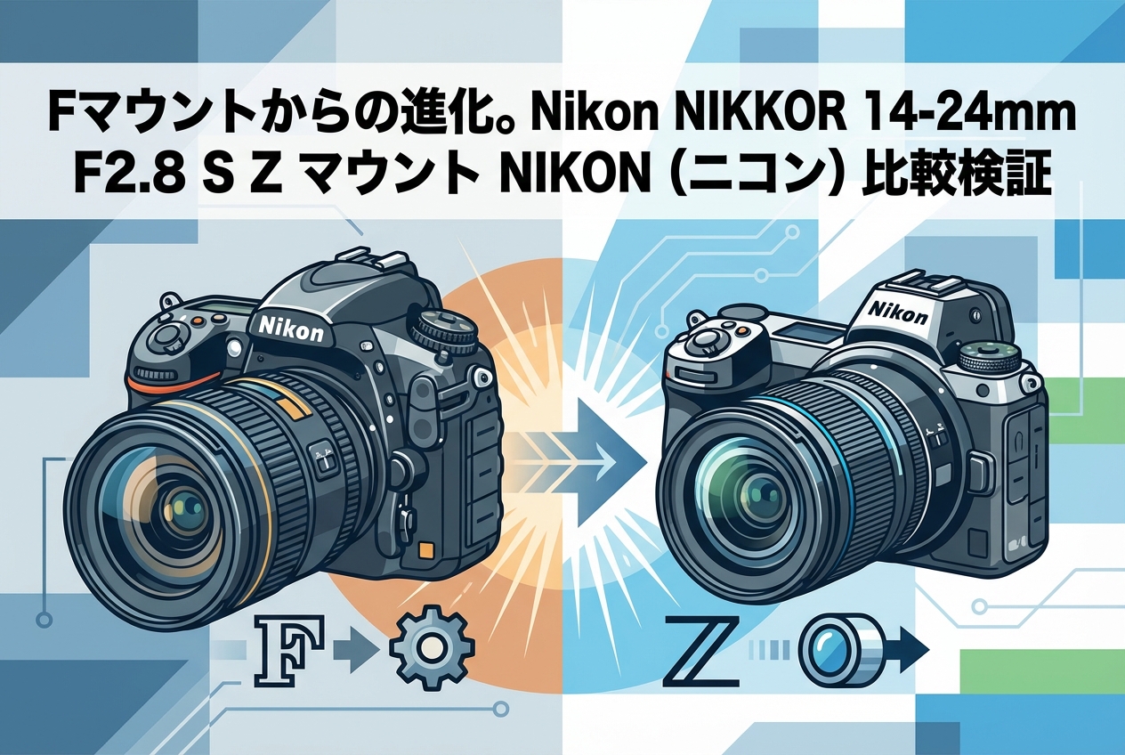 プロフェッショナルな撮影現場において、機材の選定は作品の品質と業務効率を左右する極めて重要な要素です。本記事では、超広角ズームレンズの最高峰として名高い「Nikon NIKKOR 14-24mm F2.8 S Z マウント NIKON(ニコン)」に焦点を当て、旧型であるFマウントモデル(AF-S NIKKOR 14-24mm f/2.8G ED)からの進化を徹底的に比較検証します。大口径Zマウントの採用により劇的な進化を遂げた本レンズが、いかにしてプロの過酷な要求に応え、ビジネスにおける撮影の可能性を拡張するのか。解像力、物理的特性、光学性能、そして実用性の観点から詳細に解説いたします。