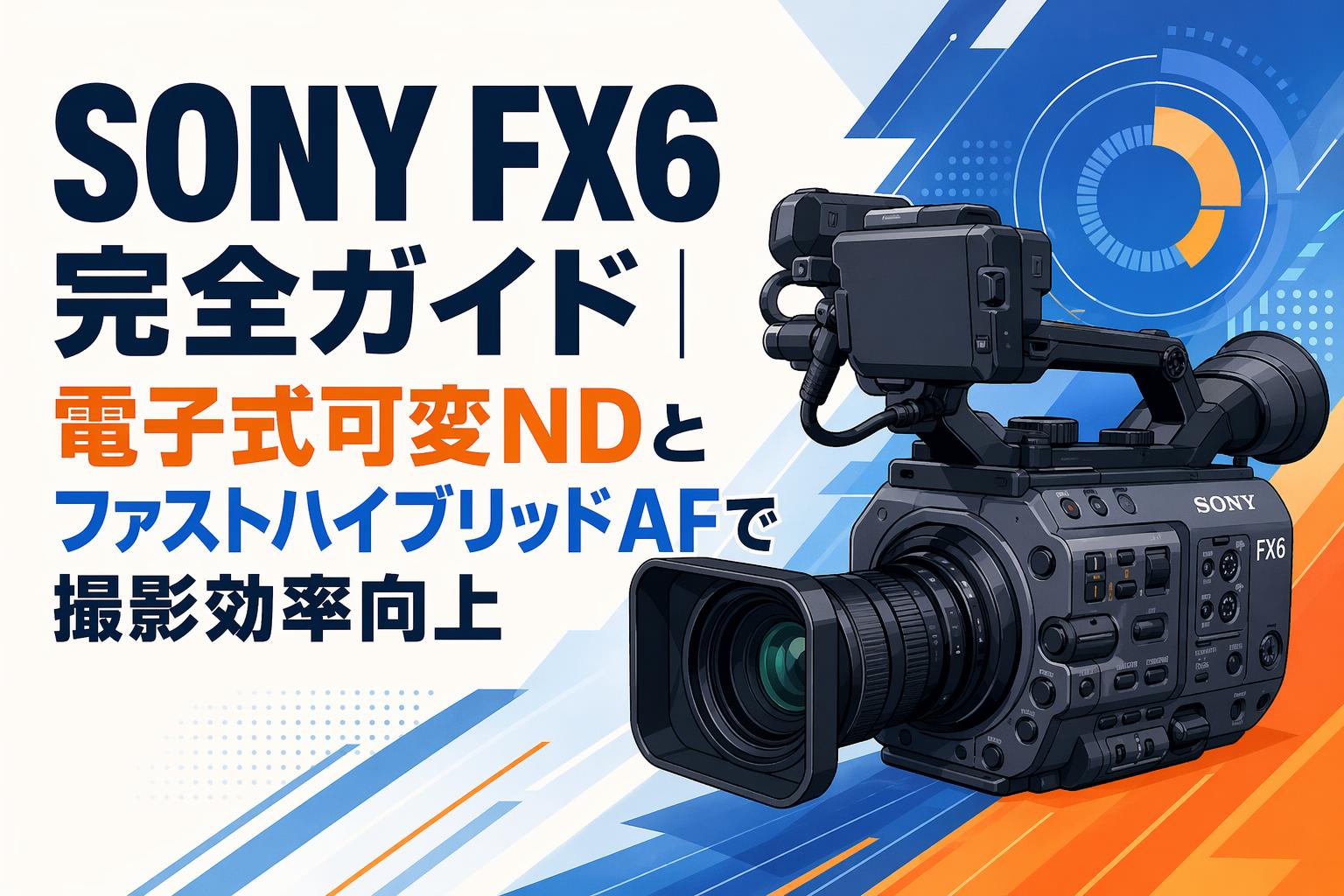 映像制作のプロフェッショナルにとって、カメラ選定は作品クオリティと現場効率を左右する最重要の意思決定のひとつである。SONY FX6(ILME-FX6V)は、Cinema Lineシリーズのフラッグシップとして、フルサイズセンサー・電子式可変NDフィルター・ファストハイブリッドAFという三本柱で業務用映像制作の課題を正面から解決するシネマカメラである。本記事では、FX6の各機能を体系的に解説し、導入検討から長期運用管理までを網羅した完全ガイドを提供する。
