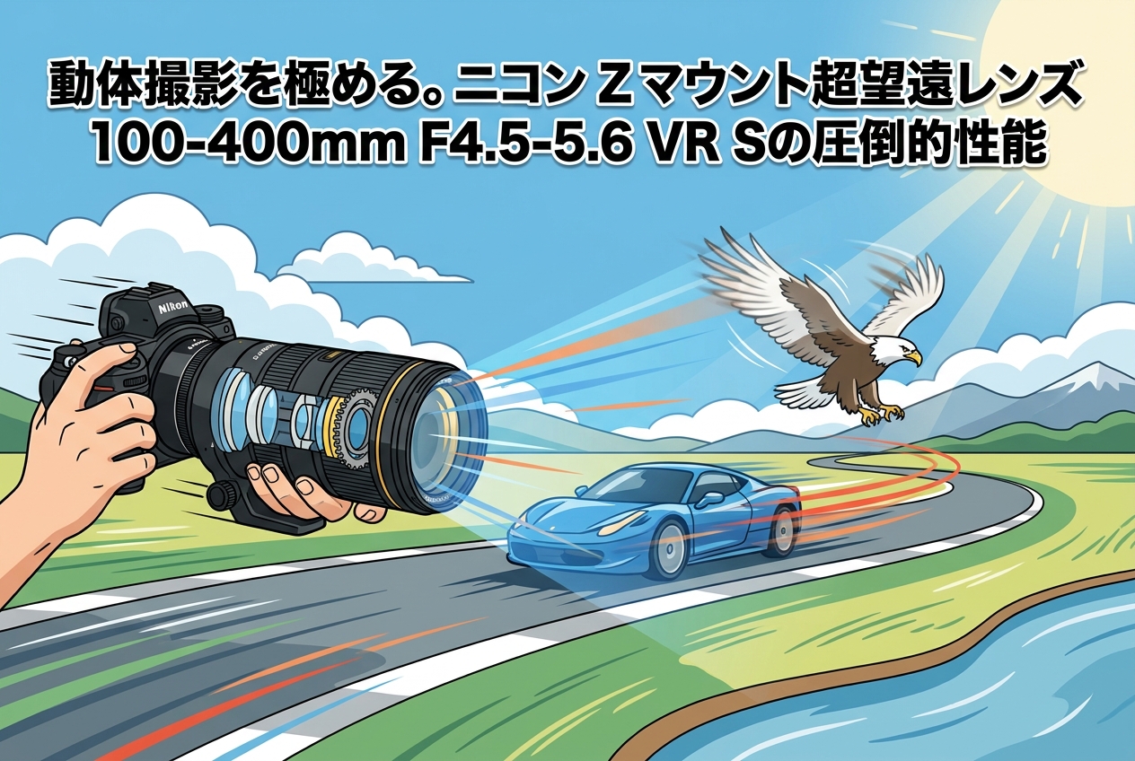 現代のプロフェッショナルな撮影業務において、機材の選定は成果物の品質を左右する極めて重要な要素です。本記事では、Nikon(ニコン)が誇るZマウント用超望遠ズームレンズ「NIKKOR(ニッコール)100-400mm F4.5-5.6 VR S」の圧倒的な性能とビジネスにおける導入メリットを徹底的に解説します。本製品は、厳しい基準を満たしたS-Lineに属し、スーパーEDレンズやEDレンズを贅沢に採用した高度な色収差補正、強力な手ぶれ補正(VR)機構を搭載した最高峰のミラーレス用レンズです。野鳥撮影からスポーツなどの動体撮影、さらには驚異的なクローズアップ撮影まで、幅広い現場でプロの要求に応えます。高額な投資となる望遠レンズですが、事前のレンズレンタルを活用した検証方法も含め、本レンズがいかにしてビジネスの現場で費用対効果を最大化するかを詳解します。
