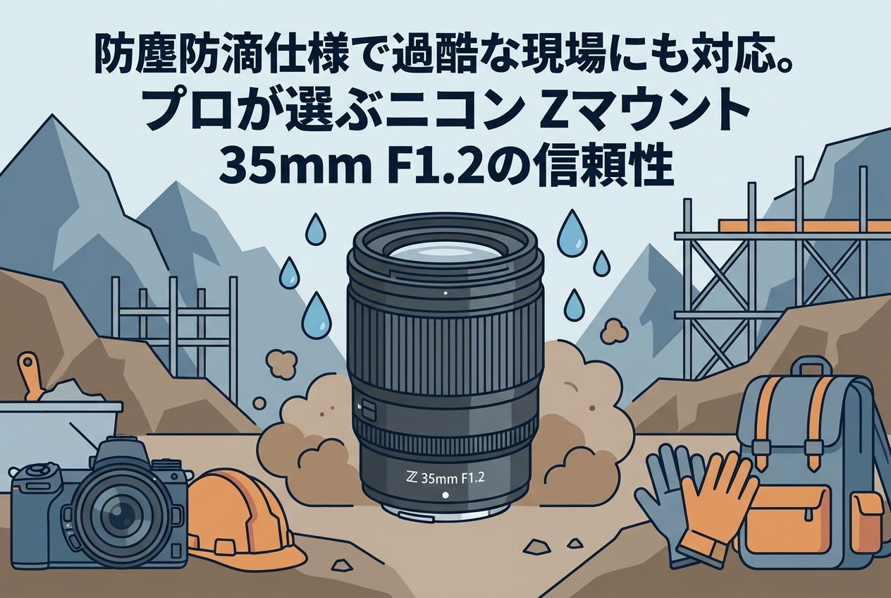 A2: はい、NikonのZマウントを採用したすべてのフルサイズミラーレスカメラ(FXフォーマット)で最高のパフォーマンスを発揮いたします。APS-Cサイズ(DXフォーマット)のカメラに装着した場合は、35mm判換算で約52.5mm相当の標準レンズとしてご活用いただけます。 - Q3: 防塵防滴仕様とありますが、雨天でもカバーなしで撮影業務を行えますか?