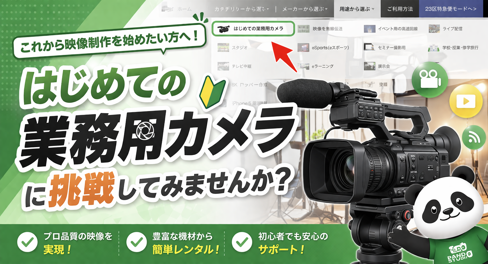 用途ページ「はじめての業務用カメラ」のアクセス方法