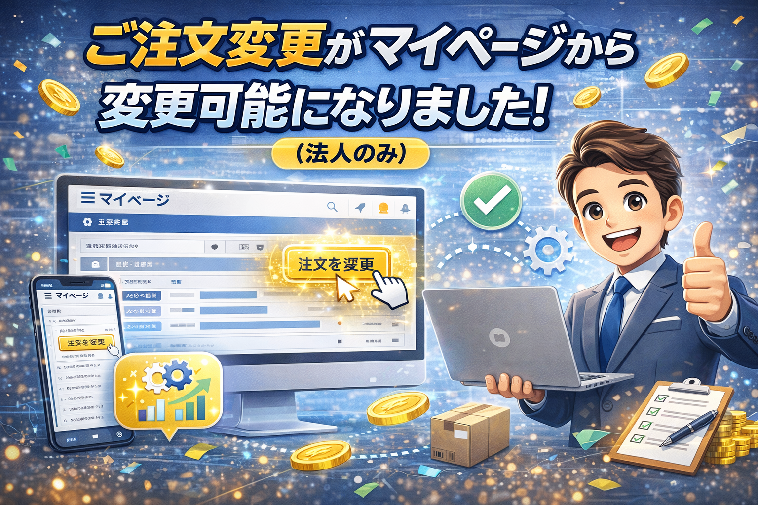 - 現在変更できるのは、法人の注文のみです。(※請求書払い、見積り、銀行振込の場合のみ可能です。個人アカウント(クレジットカード精算)は準備中です。)