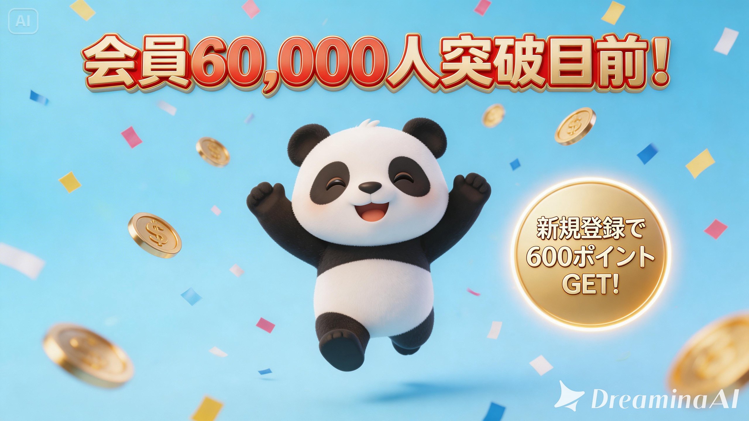 パンダスタジオレンタルは、今まさに会員数60,000という節目を目前に控えています。この特別な時を皆さんと共に祝うため、私たちは新規会員の皆様に対し、特別な感謝の気持ちを込めたキャンペーンをご用意しました。