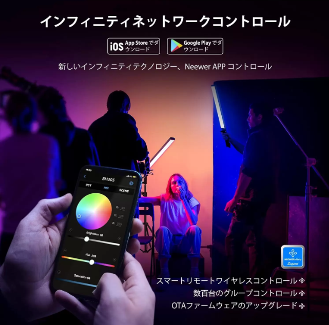 - 高度なアプリと2.4Gリモコン:3つの方法でBH-30Sを制御します。Infinity アプリで制御: NEEWERアプリを使用して、255 個以上のライトのスマートグループリモートコントロールと、49フィート(15 m)以内のOTAファームウェアアップグレードを行います。2.4G制御:異なるモデルの複数のライトを制御するためにペアリングは必要ありません。それらを同じチャンネルに設定するだけで、66フィート(20 m)以内ですべてを同時に制御できます。オンボード制御: コントロールボタンとタッチ可能なRGBカラーミキサーを介して光を調整します。