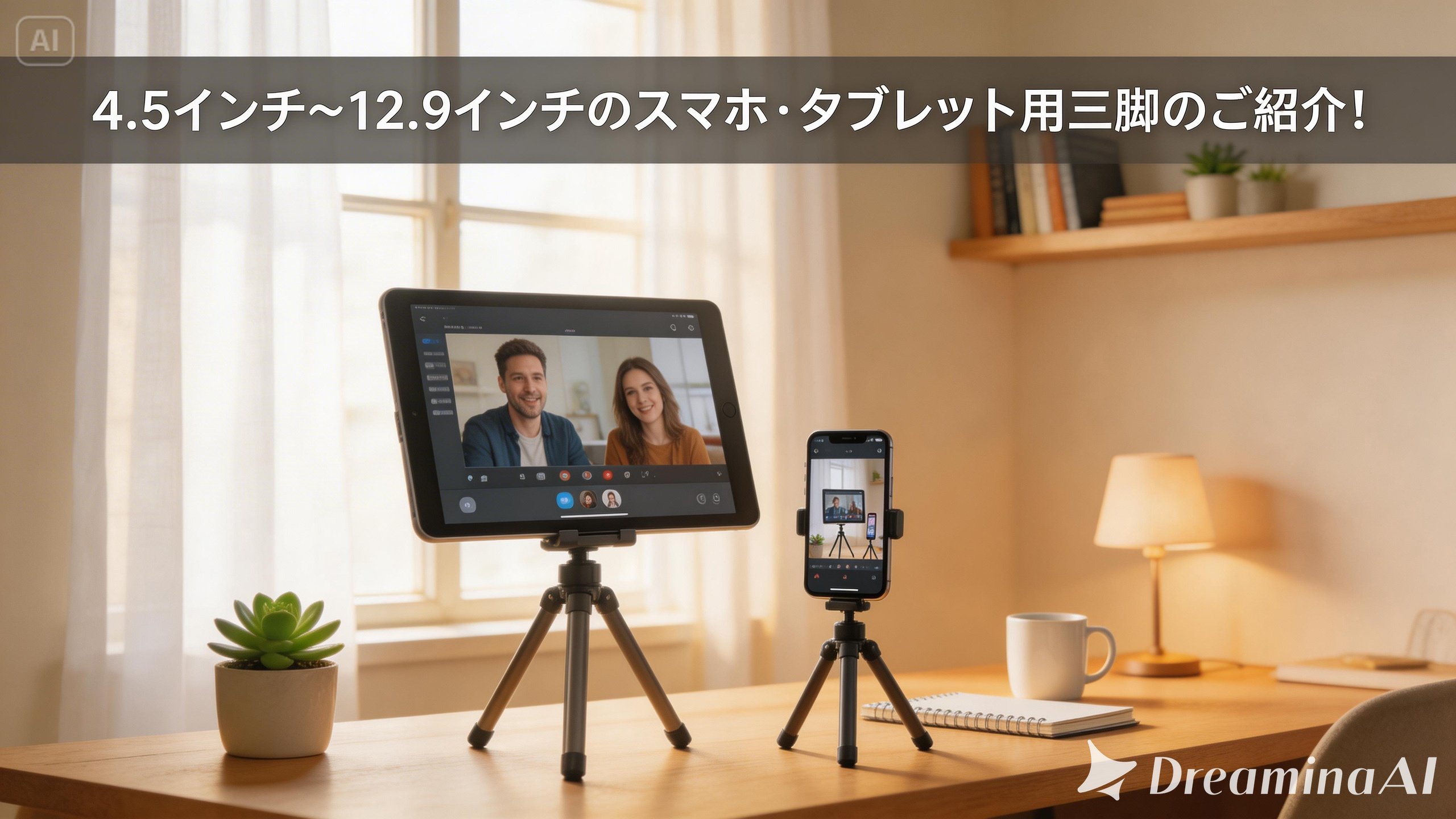 4.5インチから12.9インチ対応:撮影からオフィスミーティングまで多様に使えるiPad・タブレット・スマホ用三脚スタンド