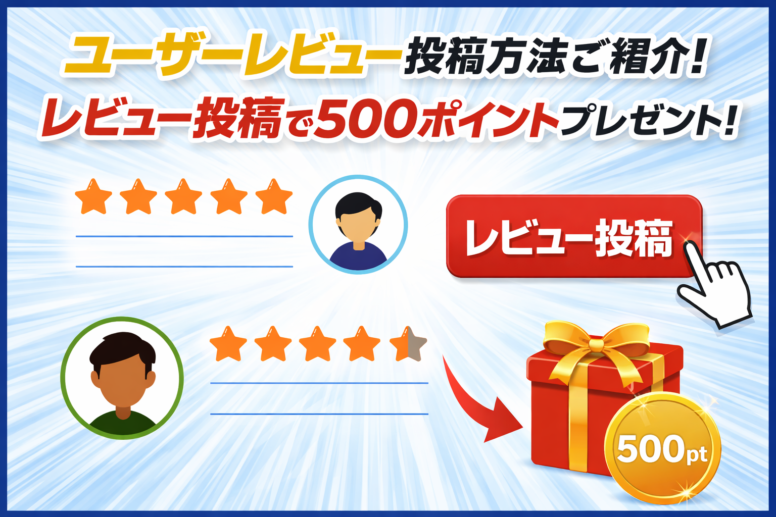 レビューの500ポイントも公開時にご登録アカウントへ付与されます。