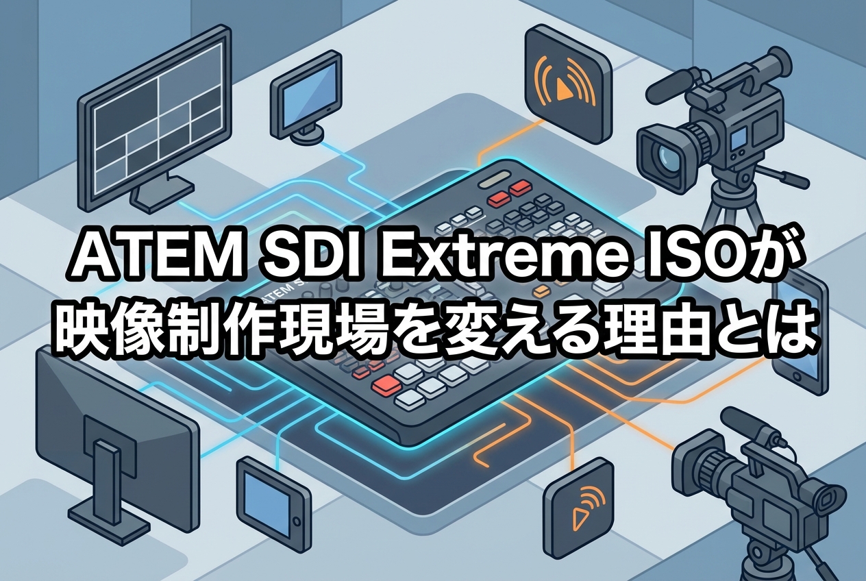 映像制作の現場では、ライブスイッチングと高品質な収録を同時に実現することが求められる場面が増えています。Blackmagic Designが提供するATEM SDI Extreme ISOは、プロフェッショナルな映像制作ニーズに応える高機能なライブプロダクションスイッチャーです。マルチカメラ収録、全チャンネルのISO録画、そしてDaVinci Resolveとの緊密な連携により、従来の制作ワークフローを根本から刷新する可能性を持っています。本記事では、ATEM SDI Extreme ISOの機能・仕様から導入メリット、選定時の確認ポイントまでを詳しく解説し、映像制作現場への導入を検討されている方に向けた実践的な情報をお届けします。