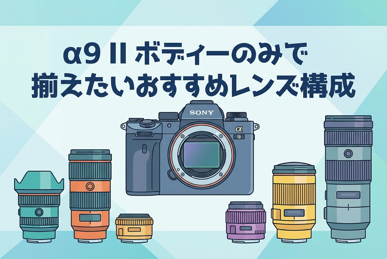SONY α9 II(ILCE-9M2)は、プロフェッショナルスポーツフォトグラファーや報道カメラマンから絶大な信頼を得ているフルサイズミラーレス一眼カメラです。20コマ/秒の高速連写、ブラックアウトフリーのEVF、そして圧倒的なAF追従性能を誇るこのボディーは、ボディーのみで購入することで、撮影目的に最適なレンズを自由に選択できるという大きなメリットがあります。本記事では、SONY α9 II ILCE-9M2(ボディーのみ)を購入された方、あるいは購入を検討されている方に向けて、このカメラの性能を最大限に引き出すおすすめレンズ構成を用途別に徹底解説します。大三元ズームレンズから超望遠単焦点、ポートレート向け単焦点まで、プロの現場で実際に選ばれているレンズ構成プランをご紹介いたします。