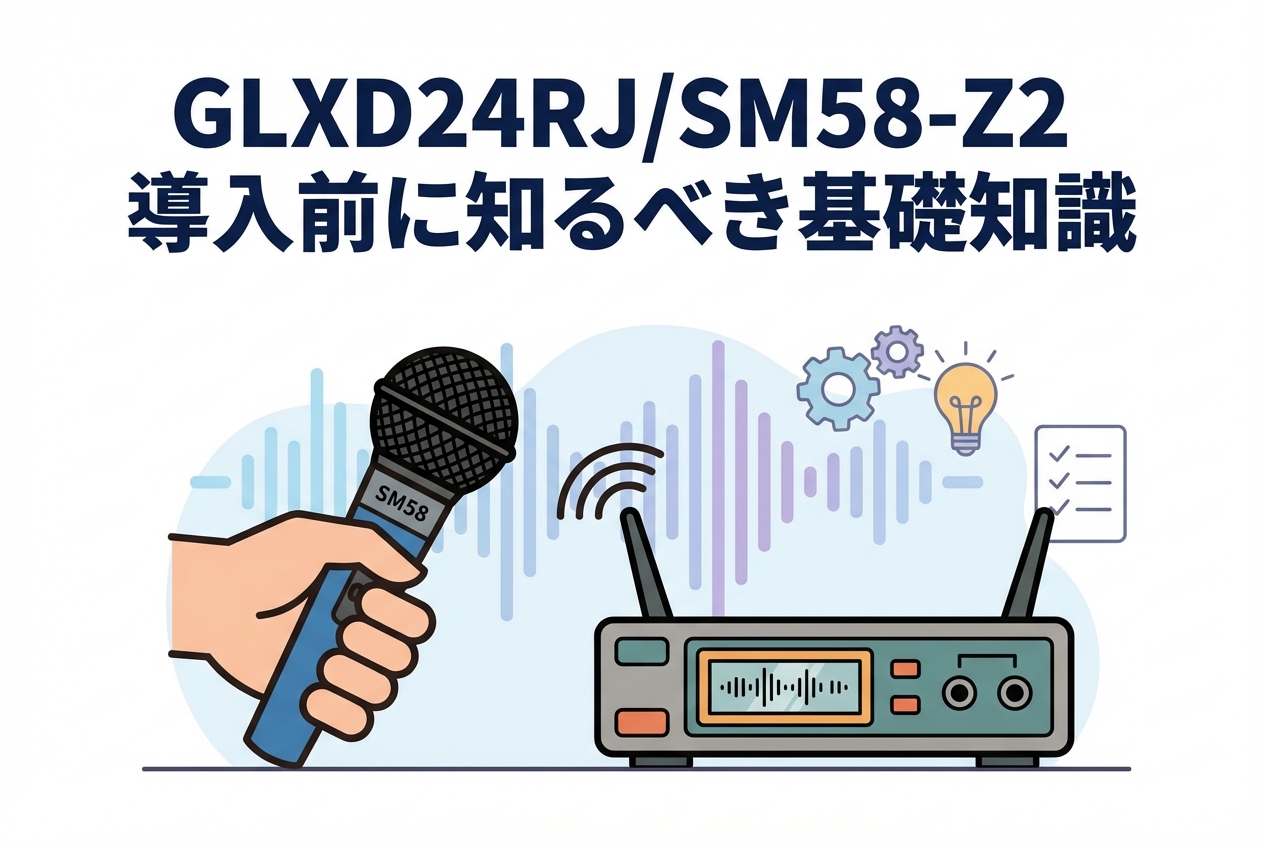 SHURE デジタルワイヤレスマイクシステム GLXD24RJ/SM58-Z2【GLXD4R デジタルワイヤレス受信機 ・GLX-D2+/SM58 ハンドヘルド型送信機】は、業務用音響機器の定番として多くの現場で採用されているワイヤレスマイクシステムです。本記事では、GLXD24RJ/SM58-Z2の導入を検討されている方に向けて、システム構成や基本仕様、導入メリット、技術的な注意点、競合製品との比較、購入時の実務事項、そして運用・保守に至るまで、導入前に知っておくべき基礎知識を体系的に解説いたします。初めてデジタルワイヤレスシステムを導入される方はもちろん、既存システムからのリプレースを検討されている方にも有益な情報をお届けします。
