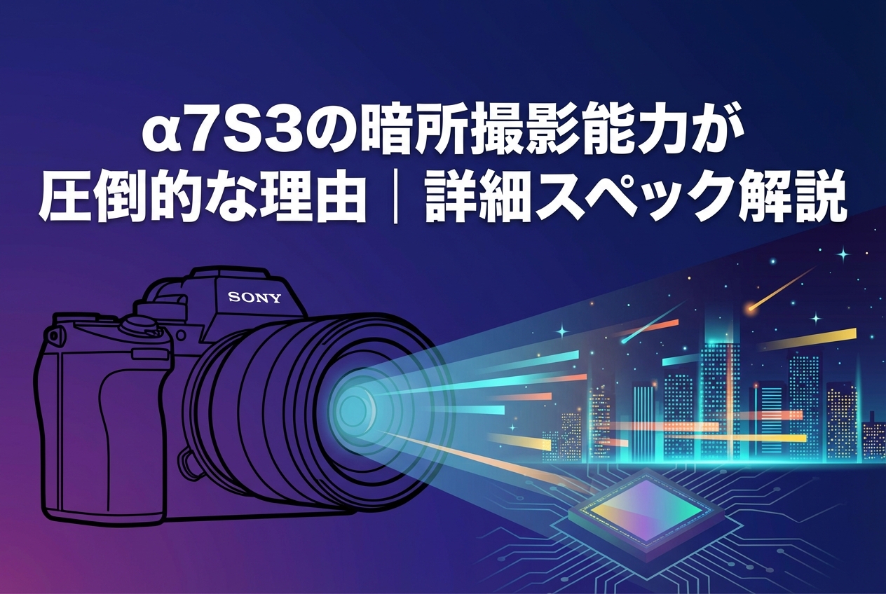 SONYα7SⅢ ILCE-7SM3(ボディーのみ)α7S3は、暗所撮影における圧倒的な性能で映像制作の現場から高い評価を受けているフルサイズミラーレスカメラです。有効画素数1210万画素という設計思想により、1画素あたりの受光面積を最大化し、驚異的な高感度性能を実現しています。本記事では、α7S3の暗所撮影能力が他機種を凌駕する理由を、スペックの詳細解説とともにお伝えいたします。動画撮影機能、AF性能、手ブレ補正、そしてプロフェッショナルな映像制作に求められるカラーサイエンスまで、購入を検討されている方が判断に必要な情報を網羅的にご案内いたします。