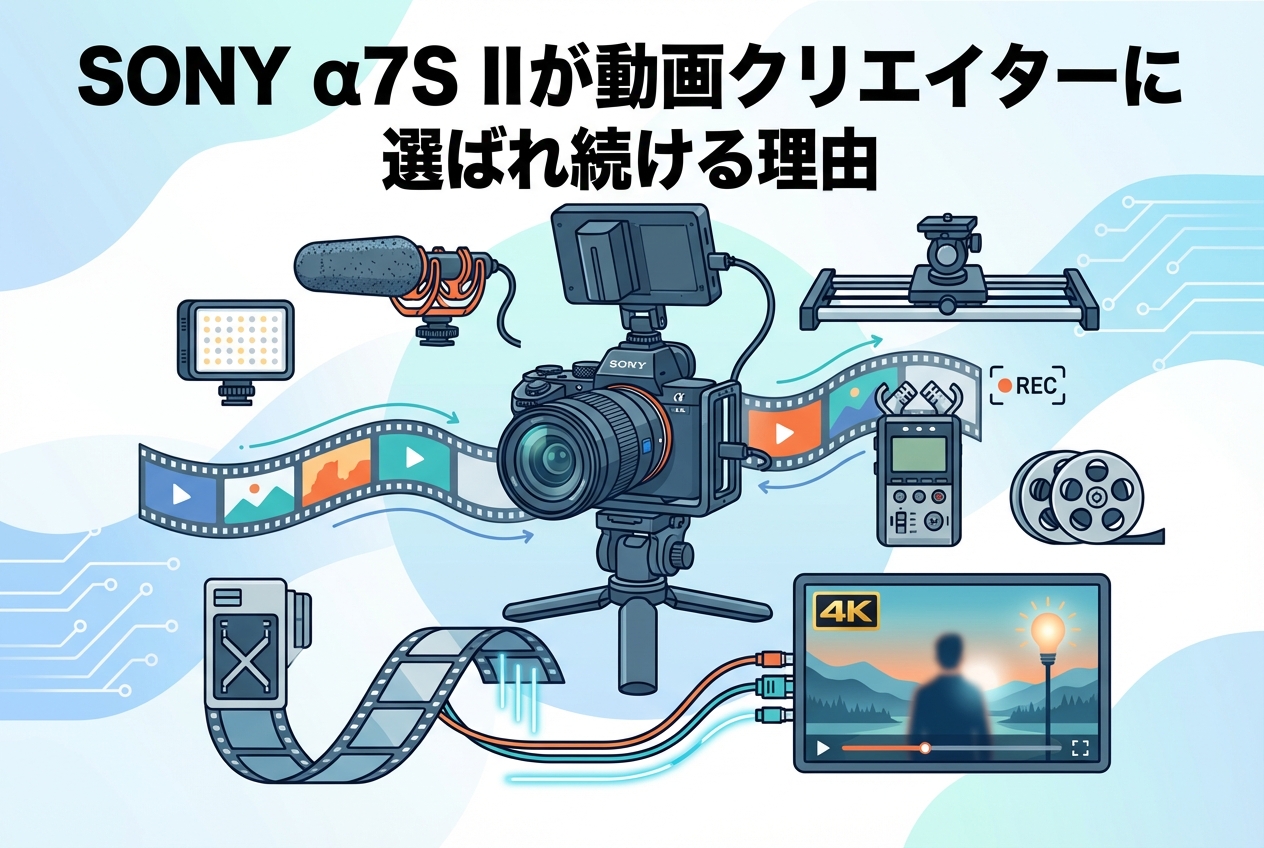 動画制作の現場において、カメラ選びは作品のクオリティを左右する最も重要な意思決定の一つです。数多くのミラーレスカメラが市場に存在する中、SONY α7S II ILCE-7SM2(ボディーのみ)は2015年の発売以降、プロの動画クリエイターから根強い支持を集め続けています。フルサイズセンサーによる圧倒的な高感度性能、4K動画記録への対応、そしてS-Log3による豊かな映像表現力。これらの特長が、なぜ今なお多くのクリエイターに選ばれているのか。本記事では、SONY α7S IIの基本スペックから実践的な活用シーン、競合機種との比較、さらには導入時の具体的なガイドまで、ビジネスとしての映像制作に携わる方々に向けて包括的に解説いたします。