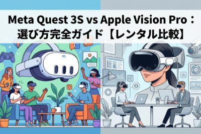 VRヘッドセットの導入を検討する際、購入前に実際の使用感を確かめたいというニーズは非常に高まっています。特に「Meta Quest 3S 128GB」と「Apple Vision Pro」は、価格帯も機能も大きく異なる2機種であり、どちらが自社のビジネスや用途に適しているかを判断するのは容易ではありません。そこで注目されているのが、1日からレンタル可能なVRヘッドセットのレンタルサービスです。本記事では、両機種のスペック比較からレンタル料金の費用対効果、用途別の選び方まで、ビジネスパーソンが意思決定に必要な情報を網羅的に解説します。