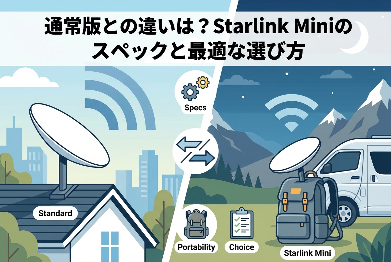 近年、衛星インターネットサービス「Starlink」が日本でも普及し、場所を問わず高速な通信環境を構築できるようになりました。その中でも、持ち運びに特化した最新モデル「Starlink Mini」が大きな注目を集めています。本記事では、Starlink Miniの基本概要から、通常版(Standard)との決定的な違い、詳細なスペック、そして導入のメリット・デメリットまでをプロの視点で徹底解説します。ご自身のライフスタイルに最適な選び方を見つけるためのガイドとして、ぜひ最後までご一読ください。
