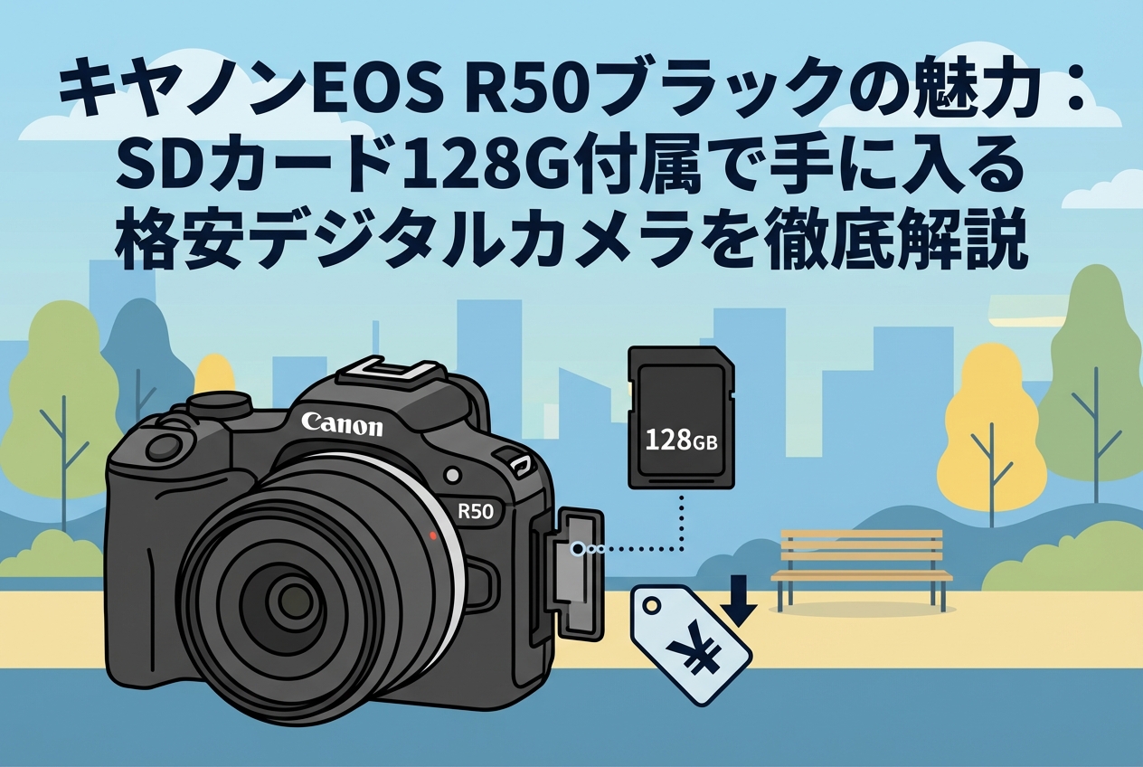 本記事では、「Canon EOS R50 SDカード 128G付属 ブラック 格安デジタルカメラ Canon(キヤノン)」をお探しの皆様に向けて、その圧倒的なコストパフォーマンスと実用性を徹底解説します。ビジネスシーンから日常の記録まで、幅広い用途で活躍する本機の魅力や、大容量SDカードがセットになることの具体的なメリットを深掘りします。スマートフォンでの撮影から一歩踏み出し、本格的な映像制作や写真撮影を始めたい方に最適な一台の全貌に迫ります。