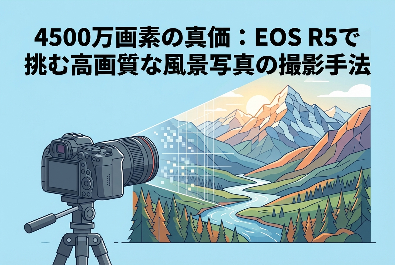 「EOS R5」は、キヤノンが誇る次世代のフルサイズミラーレスカメラとして、多くのプロフェッショナルやハイアマチュアから高い評価を得ています。特に4500万画素という圧倒的な高画素センサーは、風景写真においてこれまでにない精細な描写を可能にします。本記事では、EOS R5の真価を最大限に引き出し、息をのむような高画質な風景写真を撮影するための具体的な手法や設定、推奨レンズ、さらには過酷な環境下での運用方法までを網羅的に解説いたします。風景写真の新たな次元へ踏み出そうとされている皆様の参考になれば幸いです。