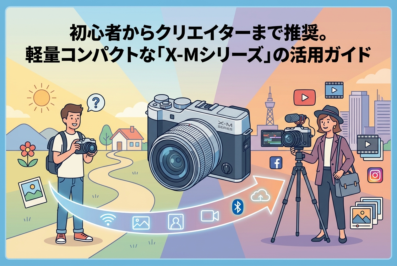 スマートフォンのカメラ性能が向上した現代においても、レンズ交換式カメラならではの描写力や表現の幅には明確な優位性があります。「X-Mシリーズ」は、これから本格的な撮影に挑戦したいと考える初心者にとって最適なエントリー機です。