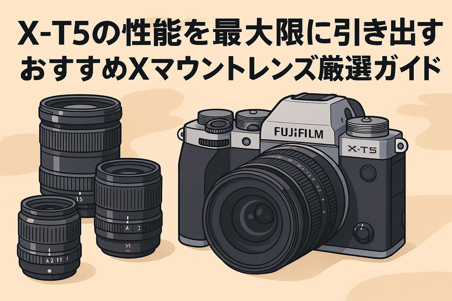 富士フイルムが誇る第5世代センサー搭載のミラーレス一眼カメラ「X-T5」。約4020万画素の高解像度とクラシカルなダイヤル操作、そして優れた機動力を兼ね備えた本機は、プロフェッショナルからハイアマチュアまで多くの写真家に支持されています。しかし、その圧倒的なポテンシャルを最大限に引き出すためには、カメラ本体の性能に追従できる高品質なレンズの選定が不可欠です。本記事では、X-T5の特性を活かすレンズ選びの重要性や評価基準を解説するとともに、撮影目的や業務要件に応じたおすすめのXマウントレンズを厳選してご紹介します。日常のスナップから本格的な商用撮影まで、皆様の最適なレンズ選びのガイドとしてご活用ください。