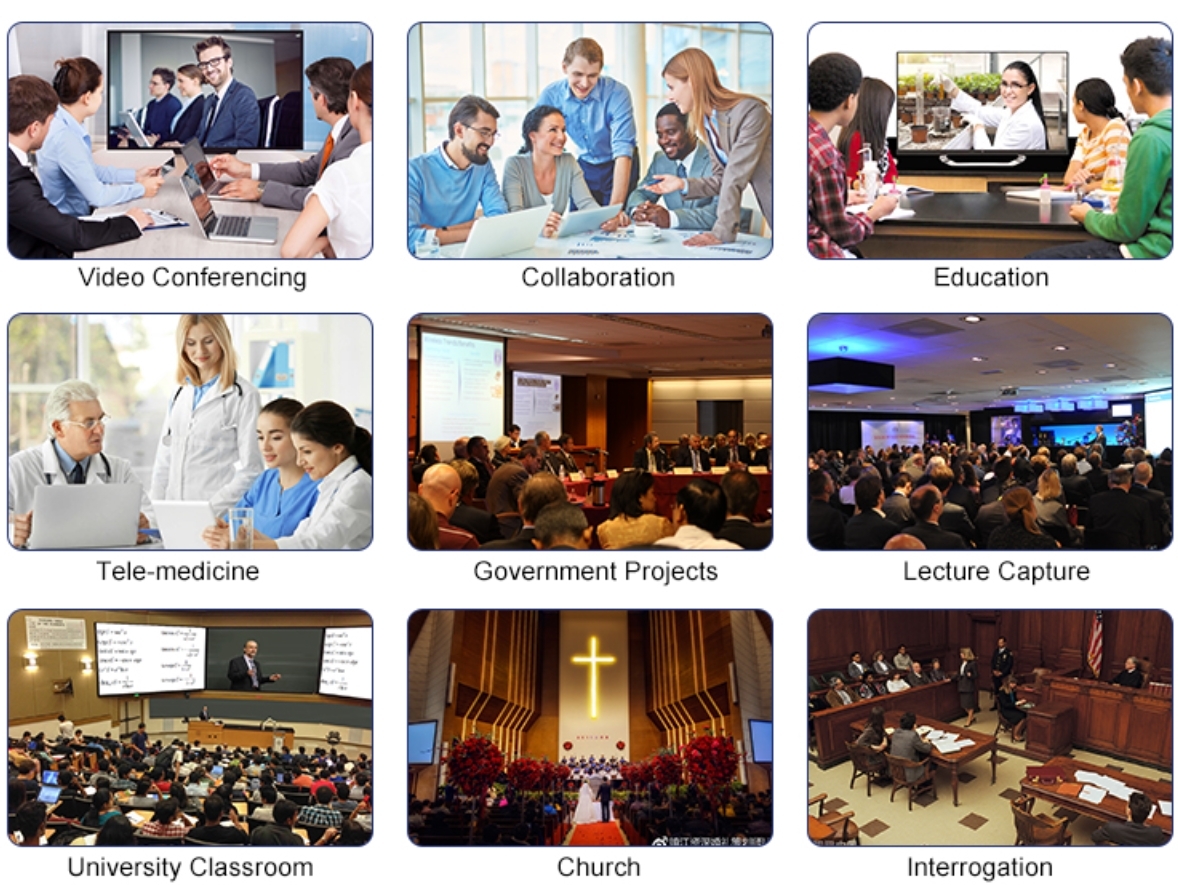 Windows7、Windows10、MAC OS 10.10 以上のシステムをサポートし、Microsoft Teams、Skype for Business、Zoom Rooms、Zoom Tencentmeeting、Dingding、Huawei WeLink などの多くの一般的なクラウドビデオ プラットフォームと互換性があります。